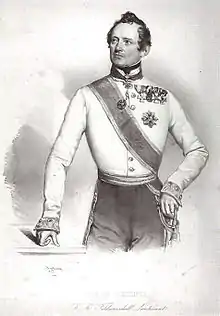 Bem retreated from the vicinity of Nagyszeben to Vízakna with Kemény, the latter continuing his way with his detachment towards Déva.[1] After the defeat at Szelindek, Puchner no longer had confidence that he could deliver a decisive blow to Bem with the forces at his disposal, and so, since the Austrian Minister of War could not send reinforcements, he looked in another direction to obtain relief troops.[2] Nicholas I of Russia, had already sent a corps to Moldavia and Wallachia in 1848 under the command of General Alexander von Lüders to contain the revolutionary movements there, which, in view of the events in Transylvania and Hungary, was left in the said provinces for the duration of the Hungarian War of Independence.[2] Puchner intended to use the intervention of this foreign force, but to make things look less compromising for the Habsburg empire, the letter of invitation was written not in his name, as a general of the Austrian army, but on behalf of the Transylvanian Saxons and Romanians.[2] Lüders, however, only offered to intervene on behalf of his government on condition that the commander of the Habsburg troops formally requested it, which Puchner did by decision of the council of war he had convened.[2] The Russians, of course, were happy to help - in fact, Nicholas I (r. 1825–1855) first wanted to send an intervention army of 20,000 troops to Transylvania - but to avoid international complications, the Tsarist forces only invaded Brassó and Nagyszeben.[4] As a result, on February 2, 3 and 4, Russian General Nikolai Engelhardt marched to Brassó with 2,680 infantry, 430 Uhlans, 190 Cossacks and 8 guns; and on February 4, Colonel Grigory Skariatin entered Nagyszeben with 1,960 infantry, 120 Cossacks and 6 guns.[2]