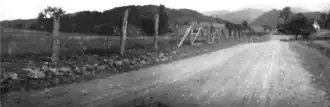 Averell moved on the road from Monterey toward Huntersville in Pocahontas County, West Virginia. He approached from the northeast, and his vanguard got within five miles (8.0 km) of Huntersville before stopping for the evening near Gibson's Store.[23] For this segment of the excursion, bushwhackers again used hit-and-run tactics against the Union brigade. Averell's wagon train was attacked by Confederate soldiers, and his vanguard drove back about 300 of Mudwall Jackson's men in front of the command.[55] Averell's after action report listed casualties for the day of four men wounded and six horses killed or disabled.[62] Another source adds that three wagons were destroyed and one of Averell's men was mortally wounded.[63]