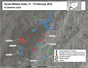 - ↑ "Syria tanks and troops 'enter protest town, Zabadani'". BBC News. 13 January 2012. Retrieved 25 October 2014.