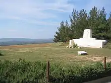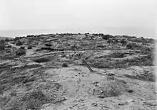 The name given to the feature by Australian troops – the Nek – derives from the Afrikaans word for "mountain pass" and according to Glenn Wahlert was "likely coined by veterans of the South African war".[2] The Turkish name for the Nek was Cesarettepe.[9] It was well suited to defence, with no vegetation, and providing the defenders good observation and fields of fire along a narrow frontage.[2] The ground was bare and covered in pot-holes, and on a slight slope.[10] The difficult nature of the terrain had been highlighted earlier in the campaign, initially when a battalion of the Turkish 57th Regiment had suffered heavy casualties during a failed counter-attack in April.[11] After the 19 May Ottoman counter-attack, Major-General Alexander Godley had ordered an attack by the New Zealand Mounted Rifles Brigade across the Nek, but Brigadier General Andrew Russell (after whom Russell's Top was named) had convinced him to abandon this over concerns of the commanders of both the Wellington and Auckland Mounted Rifles Regiments.[12] Another unsuccessful attack resulting in heavy casualties had been made by the Turkish 18th Regiment across the Nek on the night of 30 June.[13] Despite these incidents, the challenges of attacking the Nek were not fully appreciated by Allied commanders when formulating the plan for the August Offensive.[14]