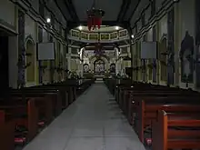 After the third relocation, Fr. Nicolas Rivera, built a church and convent of strong materials. Both church and convent were damaged by the typhoon of 1694. Fr. Ignacio Mercado, rebuilt them in 1695–97, but again were destroyed. Fr. Blas Vidal started the construction of masonry church in 1700 and was finished in 1710. Fr. Jose Victoria built the present church in 1762, under the direction of Don Juan Bandino.[1] Fr. Hipolito Huerta finished the facade and continued the construction of the transept in 1856. Fr. Felipe Bravo completed it in 1861. Fr. Moises Santos and Felipe Garcia applied the final decorations inside and outside in 1881 and 1894, respectively.[1]