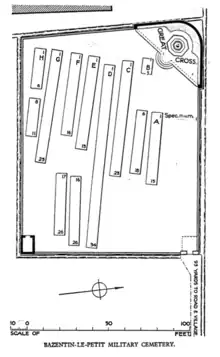 - ↑ "Bazentin-le-Petit Military Cemetery, Somme, France (CWGC)". WW1 Cemeteries.com - A photographic guide to over 4000 military cemeteries and memorials. Retrieved 2021-03-15.