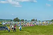 Since 1993 a yearly "Bazhov Festival" (Bazhovka) is held on the summer solstice, the Kupala Night, originally at the Lake Chebarkul.[31] The festival receives the support of the local administration of Chelyabinsk Oblast, the ministries of culture of Bashkortostan, Kazakhstan and Uzbekistan, local entrepreneurs, and over the years it received appreciation by many public figures, including Nikita Mikhalkov, and was attended amongst others by Lev Anninsky and Altynshash Jaganova.[32] Often, tickets for railway and airplane transport to the festival were provided free of charge, trains of the Moscow–Chelyabinsk route were decorated according to Bazhovite themes, and shields painted with mystical Bazhovite icons were hung throughout the cities.[33] Local troops of the Russian army also took part in the festivity.[33]