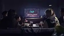 A music video for "Bazinga" was released on October 29, 2021, and the song debuted at number nine on the Billboard Hot Trending Songs chart on November 13, 2021.[22] The song peaked at number one on December 11, 2021,[23] making SB19 the first Filipino act to top the Billboard Hot Trending Songs chart.[24] The chart performance was attributed to the boy band's performance of the song at the 34th Awit Awards, that garnered a total of 1.5 million Twitter mentions.[25] "Bazinga" spent 26-weeks on the chart,[26] including seven weeks at number one,[27][28] initially beating BTS' record for the most weeks spent at number one with their single "Butter" (2021).[24][25][29] One month after the release of the song's music video, "Bazinga" had been streamed on Spotify over 4.6 million times.[30]