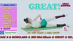 - ↑ "MOMOLAND Stays Quirky with GREAT!". January 9, 2018. Retrieved April 17, 2021.