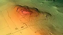 An extinct volcano, in Whitwick, 4 miles (6 km) to the west, was responsible for the fine-grained igneous rocks that the hill consists of. Beacon Hill was the site of a Bronze Age hill fort. Today a toposcope indicates landmarks which can be seen from the summit. These include Lincoln Cathedral and the hills of the Peak District.