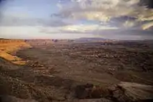 There are over 100,000 archaeological sites protected within the monument.[23][24] The buttes and surroundings have long been held as sacred or significant by a number of the region's Native American tribes.[11] In their proposal to have Bears Ears designated as a national monument, the Bears Ears Intertribal Coalition (BEITC) described the 1.9 million acres (7,700 km2) on the southeastern Utah canyonlands Colorado Plateau as ancestral land.[23][25] The Southern Utah Wilderness Alliance (SUWA) described the Bears Ears as "the most significant unprotected cultural landscape in the U.S."[24]
