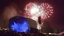 Beautiful Days has a more diverse range of musical artists than many other festivals.[7] Headline artists have included reggae (Lee "Scratch" Perry, The Wailers), alternative rock (James, Carter the Unstoppable Sex Machine), punk (The Stranglers, The Pogues), post-punk (Killing Joke, Public Image Ltd), country rock (Steve Earle), folk rock (Frank Turner), dance (Leftfield), gothic rock (The Sisters of Mercy) and blues (Seasick Steve). A number of acts from outside the US and UK which may be less familiar to festival crowds are booked each year; in recent years these have included Tinariwen (Mali), Seeed (Germany), Katzenjammer (Norway), Dubioza kolektiv (Bosnia) and Hoffmaestro (Sweden).[9] Traditionally, The Levellers open the festival with an acoustic set in the Big Top on Friday afternoon, and close it by headlining the main stage on Sunday, followed by a firework display.[10]