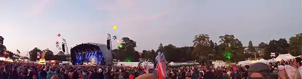 Beautiful Days is a music festival that takes place in August at Escot Park, near Ottery St Mary, Devon. The festival was founded by, and is managed by the band The Levellers and was first held in 2003. The festival has no corporate sponsorship or branding,[1] leading to Virtual Festivals proclaiming it "the festival that sells out ... by not selling out".[2] In 2011 Beautiful Days was pronounced "Best Family Festival" by the UK Festival Awards,[3] later winning the "Grass Roots Festival Award" in 2015,[4] as well as the "Best Medium Festival" award from FestivalKidz the same year.[2] Every festival from 2003 to 2021 sold out in advance;[5] although the 2020 festival was cancelled due to the COVID-19 pandemic. The current capacity is 17,500.[6]