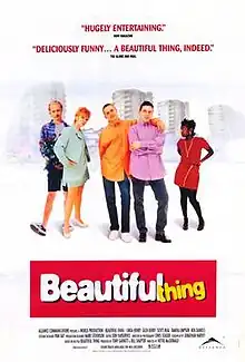 Beautiful Thing is a 1996 British romantic comedy film directed by Hettie MacDonald and released by Channel 4 Films.[2] The screenplay was written by Jonathan Harvey based on his own original play of the same name.
