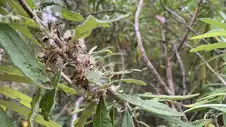Bedfordia salicina undergoes strong macropod browsing effects, particularly when preferred species such as Exocarpus cupressiformis and Bursaria spinosa supplies are absent or exhausted.[11]