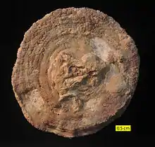 A study of the taphonomy of silicified fossils (especially brachiopods) in Devon concluded beekite resulted from the aerobic decomposition of organic matter in an environment with a limited supply of silica during early diagenesis.[5] Elsewhere, beekite has been compared to silcrete, indicating a break in sedimentation, where it occurs as encrustations on clasts of carbonate rock in the Palaeocene alluvial fan deposits of central Anatolia.[6]