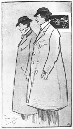 The Beggarstaffs, drawing of William Nicholson (left) and James Pryde by Phil May (1864–1903), first published in The Studio, September 1895