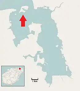 The south part of the island is mainly mangrove, vacant land, and fish farms. The roughly sixty fish farms are located furthest south. North of them is an area of mangrove that is home to some of the same birds found in the Dongzhai Port Nature Reserve. Also living in the mangrove is Marinomonas mangrovi, a species of gram-negative bacterium from the genus of Marinomonas. It was identified after being isolated from the mangrove's rhizospheric soil.[3][4][5][6][7] The villages are located in the north part of the island.
