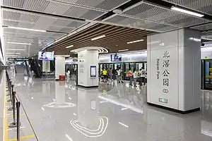 Beijiao Park station (Chinese: 北滘公园站) is an interchange station between Foshan Metro Line 3 and Guangzhou Metro Line 7 in Foshan's Shunde District.[1] It opened with Guangzhou Metro Line 7 on 1 May 2022,[2] with Foshan Metro Line 3 opening on 28 December 2022.[3]