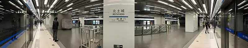 Beitucheng station (Chinese: 北土城站; pinyin: Běitǔchéng Zhàn) is an interchange station on Line 8 and Line 10 of the Beijing Subway.