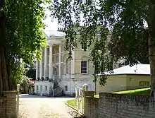 Belfield House was built around 1775-80 for Isaac Buxton and his wife. It was designed by John Crunden.[2] Buxton's grandchild was the MP and social reformer Thomas Fowell Buxton, who spent time at Belfield House during his childhood. He would later become the MP for Weymouth and Melcombe Regis in 1818,[4] and the owner of Belfield House.[5] During the early 19th-century, the drawing room and south-east front were reconstructed, as was the conservatory in the late 19th century.[2]