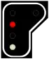 or | Red and White: allows the passage under 'minor movement' (change the type of movement if it was major movement ). The track behind the signal is occupied, dead end or the next signal is at 'halt' and is at abnormally reduced distance (<370 metres) | or |