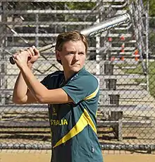 - ↑ Warren, Adrian (17 January 2008). "Victorian's squad pitch pays off — SOFTBALL". The Age. Melbourne, Australia. p. 13. 20080117000020192571. Retrieved 7 March 2012.