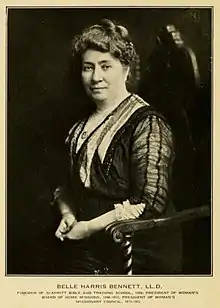 Belle Harris Bennett (December 3, 1852 – July 20, 1922) led the struggle for and won laity rights for women in the Methodist Episcopal Church, South. She was the founding president of the Woman's Missionary Council of the Southern Methodist Church. Much of her work including fundraising and organizational efforts to provide higher education for a new professional class of social workers and community organizers in the Southern Methodist Church in the U.S. and abroad. Her carefully collaborative support for African Americans and immigrants was considered radical at that time by Southerners. She was a suffragist and supporter of temperance as well.
