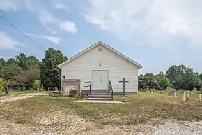 In 1907 Hoosier Group artist T. C. Steele and his wife, Selma Neubacher Steele, moved into newly built studio and home on 60 acres (24 hectares) of hilltop land one and a half miles south of Belmont. They named their summer retreat the House of the Singing Winds; it became their year-round residence in 1912.[4][5] After purchasing additional acreage in 1911 to increase their Brown County property to 211 acres (85 hectares) of land, they made further improvements that included an enlarged home surrounded by expansive gardens, a large studio-gallery, and several other outbuildings.[6] In July 1945 Selma donated the entire property and more than 300 of her husband's paintings to the Indiana Department of Conservation (the present-day Indiana Department of Natural Resources) to preserve it as the T. C. Steele State Historic Site. It was listed on the National Register of Historic Places in 1973. The T. C. Steele Memorial Cemetery, which is also in the state historic site near Belmont, includes the graves of T. C. and Selma Steele.[7]