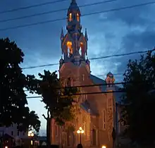 By 1768, however, the local population had grown to the point where a request to the Bishop of Quebec for the establishment of a mission was successful. In 1772, a presbytery-chapel was completed, and the registry of the parish of Saint-Mathieu-de-Belœil, was opened.[16][17] The parish received its first resident priest the next year, then, in 1775, François Noiseux became local priest and, under his guidance and with his financing, the parish would build its first church from 1784 to 1787. The parish was canonically erected in 1832 and, after the first half of the nineteenth century saw the growth of a small hamlet around the church, became a parish municipality in 1855. The Saint-Mathieu Church burned and was rebuilt twice (in 1817 and 1895); the third one still stands.[16][17][18][19]