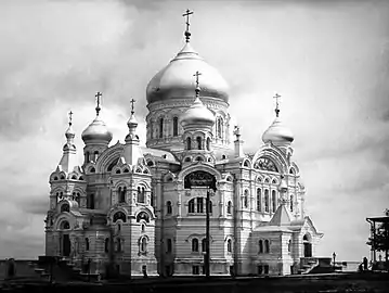 On September 16, 1897, a procession from Moscow and St. Petersburg delivered five holy icons. On November 16, 1897, the wooden church burnt down. Construction on the new two-story stone church began in June 1902, but it was only opened in 1917. Tragic events came to the monastery in 1918, as on August 12 of that year, the Bolsheviks tortured and threw the monastery's Archimandrite Varlaam into the Kama River. From August 1918 to January 1919, the Bolsheviks executed and tortured 34 monks from the monastery. In March 1923, the monastery was completely closed down.