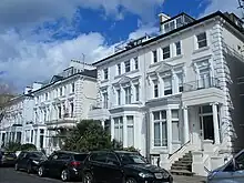 Belsize Park Gardens is a street in the Belsize Park area of Hampstead in London. Located in the London Borough of Camden, it is residential street featuring white stucco Victorian era buildings. It runs roughly southeastwards from Belsize Avenue in Belsize Village before terminating at a junction with Eton Avenue, England's Lane and Primrose Hill Road. The Grade II listed pub The Washington, dating from around 1865, is located at its eastern end.[1]
