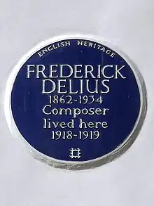 The area was laid out in the mid-nineteenth century as prosperous housing to provide for the expanding population of the capital. The Italianate stucco style resembled similar new neighbourhoods in Kensington. From 1855 the property developer Daniel Tidey directed the development of the street, described by Pevsner as "the most impressive stretch" notable for its paired palazzi with ionic porches.[2] It is built on the land of the former Belsize House estate from which it takes its name, along with various other streets in the vicinity.[3] Notable former residents included the composer Frederick Delius and the journalist Henry Noel Brailsford, both of whom are now commemorated with blue plaques.[4][5]