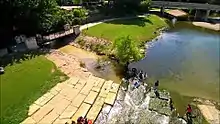 It is bordered to the northeast by the Leon River, across which is the city of Temple. Nolan Creek, a tributary of the Leon, runs through the center of Belton. It is also southeast of Belton Lake and northeast of Stillhouse Hollow Lake with both touching its city limits. The city limits extend south along Interstate 35 across the Lampasas River nearly to Salado, and abuts the Temple city limits at the Leon River.