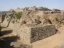 Standing 500 metres (1,600 ft) above the Jordan River Valley level, the plateau commanded the route from Gilead into the Kingdom of Jerusalem via a nearby river crossing.[2] To the north is the Sea of Galilee, and to the west are hills. The site of the castle dominated the surrounding area, and in the words of Abu Shama, the castle is "set admidst the stars like an eagle's nest and abode of the moon".[3]