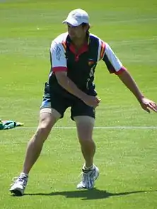 The 19-year-old Hilfenhaus was one of 25 young players given scholarships to go to the Commonwealth Bank Cricket Academy in May 2002,[3] and later that year he was given a rookie contract with Tasmania for the 2002/03 season.[4] In 2003 Hilfenhaus was again included in the 25-man intake to the CB Cricket Academy.[5] It was not until 17 October 2005 that he made his senior debut aged 22, playing for Tasmania in the Pura Cup, Australia's first-class competition. The match ended in a draw and Hilfenhaus took a single wicket, that of Mitchell Johnson bowled, while conceding 126 runs.[6] For the 2005/06 season Hilfenhaus still had a rookie contract and also worked as a bricklayer. That season he claimed 39 wickets in the Pura Cup at an average of 30.82, breaking the record set by West Indian Michael Holding for most first-class wickets in their first season for Tasmania. Hilfenhaus was rewarded with a full contract with Tasmania for the first time and he was given a place in the Australia "A" squad for the winter Top End series.[7][8] He had previously represented Australia at under-19 level.