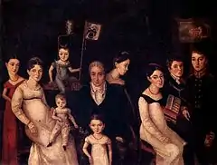 Portrait of the Benois family, c.1816, showing parents Louis & Ekaterina Benois surrounded by their eight children Jeannette (b.1798), Mikhail (b.1799), Leonty (b.1801), Alexandrina (b.1803), Elizaveta (b.1806), Elena (b.1807), Nicholas (b.1813) and Francois (b.1814).