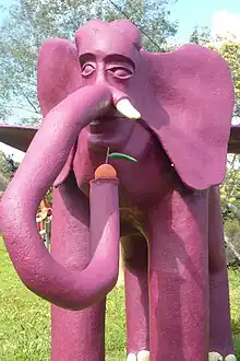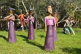 Next to a rural road road leading out of the of Barão de São João, are a collection of figurative sculptures. They were created by Deodato Inácio Santos, a man who was born near Lagos in 1939.