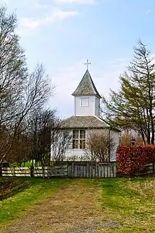 The unpredictable weather conditions on the Frøysjøen strait make it easy to understand that people wanted to have their own church at Berle. For centuries they had gone to the nearby Rugsund Church, and they had experienced their fair share of dramatic episodes on their way to church. To make matters worse, it took close to four hours by boat and car to get to the church and back. The school was the only house they could use for assemblies, but around 1900, more and more people agreed that it was time to start the process of getting their own church. Things improved a little when the village of Berle got their own graveyard in 1893, next door to the present church site. The small chapel by the graveyard was also a blessing, because people could congregate there before the coffins were lowered into the ground. Nevertheless, a church of their own was high on the list of the local population.[3][4]