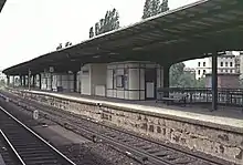 An S-Bahn station from 1928, service was interrupted in 1980 and not resumed until 30 December 1998, when the station reopened in its current form. The entrance building from 1846 is preserved in its original condition and is one of the oldest in Germany.