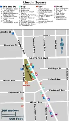 - ↑ "German Neighborhood in Chicago - Lincoln Square and Ravenswood". Chicago Dossier. Denali Multimedia LLC. Archived from the original on 7 July 2014. Retrieved 22 July 2013.