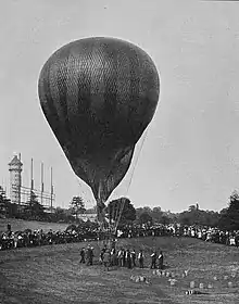 The first balloon flight with the aim of making meteorological observations was undertaken on 30 November 1784 by the American medical doctor John Jeffries together with the professional balloonist Jean-Pierre Blanchard.[5] Some of the first systematic investigations into the upper atmosphere was performed between 1862 and 1866 by the English meteorologist and important pioneer aerologist James Glaisher. On 28 balloon flights, he measured the temperature, air pressure, humidity and the wind speed up to an altitude of almost 9000 meters.[6][7] As his instruments were not sufficiently protected from solar radiation, and as he placed them inside the basket, his temperature measurements were particularly high and affected by errors. In the following years, most scientific balloon flights were made by French scientists such as Camille Flammarion, Gaston Tissandier and Wilfrid de Fonvielle. However, the investigation of the upper atmosphere remained isolated endeavors of individual researchers until the 1890s.[8]