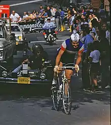 Bernard Thévenet (French pronunciation: [bɛʁ.naʁ te.və.nɛ]; born 10 January 1948) is a retired professional cyclist. His sporting career began with ACBB Paris.[1] He is a two-time winner of the Tour de France and known for ending the reign of five-time Tour champion Eddy Merckx, though both feats are tarnished by Thévenet's later admission of steroids use during his career. He also won the Dauphiné Libéré in 1975 and 1976.