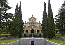 In 1895[23] Elío married Teresa Zubizarreta Olavarría (1870–1936),[24] descendant to a distinguished Gipuzkoan landowner family from Ataun in the Tolosa county.[25] The couple settled in Zaragoza, though later they moved to Zubizarreta properties in Gipuzkoa; it is not clear how many children they had. The only one known was Bernardo Elío Zubizarreta, the 8. Marqúes de las Hormazas;[26] marginally involved in Carlism in the early Francoist era,[27] he did not become a public figure. Neither did any of the Elío Lopetedi[28] grandchildren;[29] following death of Bernardo Elío Lopetedi the 9. Marqués de las Hormazas in 2016[30] the title is vacant.[31]