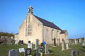 The church of Berriedale was built in 1826 by Government, at an expense of £750.[4] In 1827, the church was made as a "Parliamentary church" under the Act 5 Geo. IV. c. 90, on a piece of ground conveyed to the Commissioners under the Act by James Home of Langwell. The church was surrounded by a stone wall. As early as 1833, interments had been made in the ground enclosed by the wall, and immediately surrounding the church. In 1846, the Parliamentary church and district were erected into the quoad sacra parish of Berriedale. In 1892, the minister of the parish was the Rev. Daniel Macdougall. There being no resident elders in the parish, the kirksession consisted of the minister and two assessors from the Presbytery of Caithness. There were no pew rents derived from the seats in the church.[5] The church was capable of being enlarged, by erecting galleries.[4]