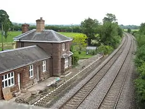 Berrington and Eye railway station was located in Eye, Herefordshire. It opened on 6 December 1853 and closed on 9 June 1958.[1] The station was opened under the Shrewsbury and Hereford Joint Railway and closed under the auspices of the Western Region of British Railways. The former station is on the operating Welsh Marches Line.