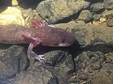 Phylogenetic analysis using nuclear and mitochondrial DNA seems to indicate that the Berry Cave salamander and the Tennessee cave salamander have diverged from the spring salamander only recently.[4] The Berry Cave salamander is usually a paedomorphic species which does not undergo metamorphosis to an adult stage, instead remaining and breeding in the larval state, retaining its juvenile traits for the rest of its life.[4]