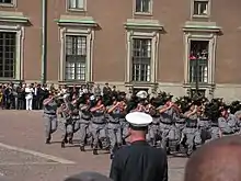 Bersaglieri are well-known for their extraordinary performances in parades and military tattoos, always running instead of marching, with hundreds of black capercaillie feathers flowing from their wide-brimmed black hats. These feathers are also worn on Bersaglieri combat helmets. They once served a military purpose, acting as camouflage and as a sunshade for the marksman's shooting eye. Today, they are a badge of honour, attracting new recruits and fostering esprit among their wearers.[1]