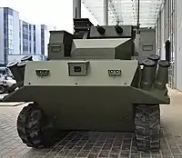 Berserk is an unmanned remotely controlled combat complex that was developed in the Republic of Belarus in 2018. The combat complex is equipped with two four-barrel rapid-firing aircraft machine guns GShG-7.62 and designed for engagement of small-size UAVs and enemy troops.[1] [2] For the first time, Berserk was presented at the parade of troops of the Minsk garrison on July 3, 2019 in honor of Independence Day of the Republic of Belarus.[3][4]