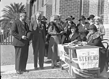 Still only 50 years old when he lost the premiership, Stevens had long had hopes of a career in the federal parliament.[9] Prime Minister Joseph Lyons had no clear successor, and within New South Wales many thought Stevens would be a suitable replacement; he had little support in other states, however.[10] Despite Robert Menzies's attempts to discourage him, he abandoned his Assembly seat in 1940 and ran for the Labor-controlled Division of Lang[11] during that year's federal election. He was easily defeated by the ALP incumbent, Dan Mulcahy.[1][12]