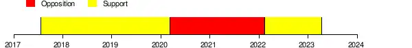Better Serbia contested the 2020 Serbian parliamentary election in an alliance with Healthy Serbia.[5] Their list did not cross the electoral threshold to win representation in the assembly. Better Serbia won a narrow victory in Jovanović's home community of Topola in the concurrent 2020 Serbian local elections, defeating the Serbian Progressive Party by sixteen seats to fifteen. After the election, the Progressives formed a new governing alliance with smaller parties in the local assembly, and Better Serbia served in opposition.[6] In April 2021, however, two defectors from the Progressives allowed Better Serbia to form a new municipal administration with the support from the Movement for the Restoration of the Kingdom of Serbia. Topola's incumbent mayor, Ivan Petrović, also chose to join the new administration.[7]