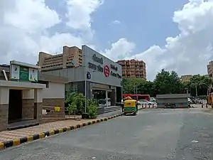 Delhi Transport Corporation bus routes number 323, 392, 392B, 398, 442, 448EXT, 479, 479CL, 529SPL, 543A, 567, 567A, 568, 568A, 569, 588, 611A, 711, 711A, 724, 724C, 724EXT, 780, 794, 794A, 864, 874, 984A, AC-479, AC-711, AC-724, AC-724A Anand Vihar ISBT Terminal – Gurugram Bus Stand, Anand Vihar ISBT Terminal – Gurugram Bus Stand AC TMS (-) TMS-Azadpur-Lajpat, TMS-LajpatNagar, TMS-PBagh serves the station from nearby Hyatt Hotel bus stop.[2]