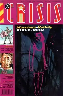 ![]() "Bible John" on the cover of Crisis #57, dated April 1991; art by Daniel Vallely. | |