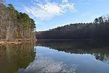 The park has an area of 4,138 acres (16.75 km2) and is forested with timberland and hardwood bottomland. Cypress Creek and the Tuscumbia River border the property. The park's central feature is 35-acre (140,000 m2) Travis McNatt Lake. The namesake Big Hill Pond was formed by excavation in 1853 as a borrow pit that was a source for soil used to build a levee across the Tuscumbia and Cypress Creek bottoms for the Memphis and Charleston Railroad. In addition, the floodplains of the Tuscumbia River and Cypress Creek contain small oxbow lakes and sloughs that provide desirable habitat for waterfowl, other wildlife, and fish. A large stand of cypress trees has grown up in and around Big Hill Pond, which is accessible by four-wheel-drive vehicles. The park contains the Big Hill Pond Fortification, which was the site of Union defenses above the Memphis and Charleston Railroad during the Civil War.